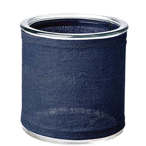"Shade Linn" överdrag i blå linneväv. Glaset köps separat och överdraget kan bytas efter säsong och tillfälle. Använd som ljuslykta eller som vas. Trä på överdrag sträckt eller kasa ner för ett veckat intryck som inte täcker hela glaset.