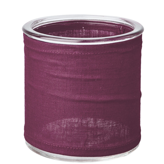 "Shade Linn" överdrag i lila linneväv. Glaset köps separat och överdraget kan bytas efter säsong och tillfälle. Använd som ljuslykta eller som vas. Trä på överdrag sträckt eller kasa ner för ett veckat intryck som inte täcker hela glaset.