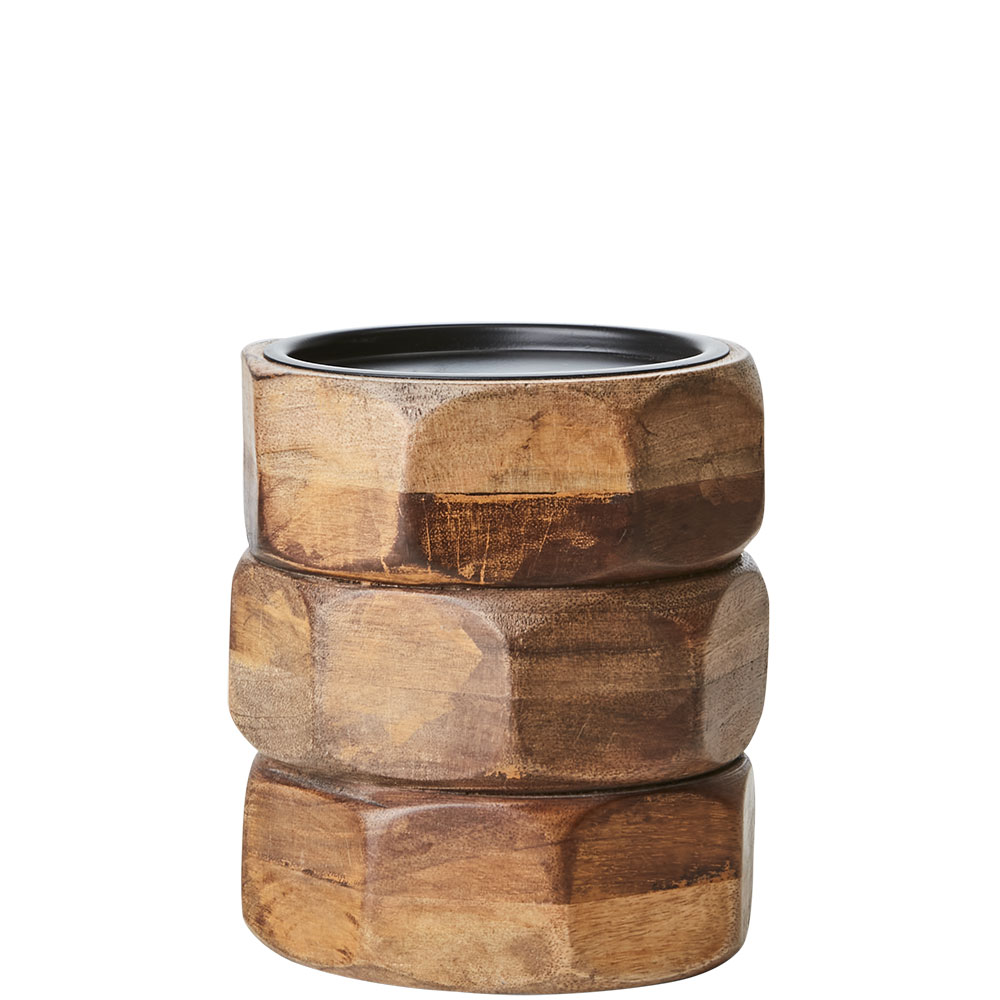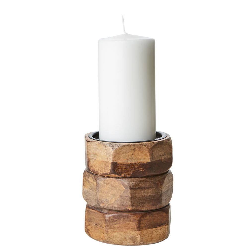"Bronx" Naturfärgade blockljusstakar i mangoträ. Tunga och maffiga med skiftande 8-kantiga nivåer i det levande mängoträdets yta med sina ojämnheter och naturligt stora färgskiftningar i trä.