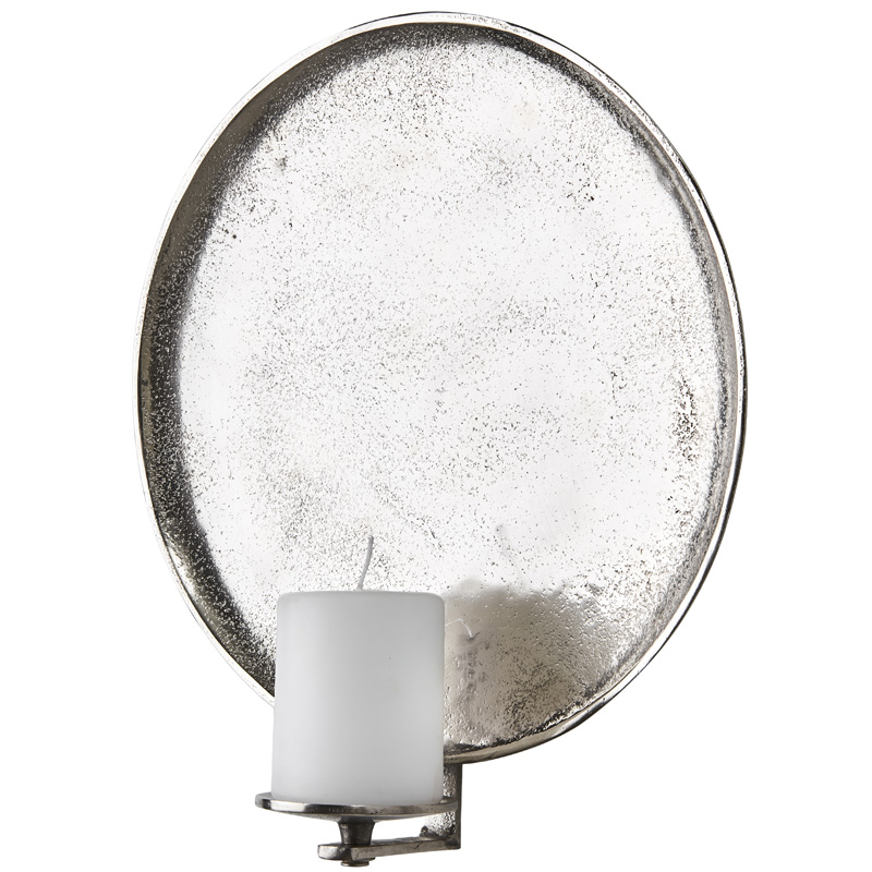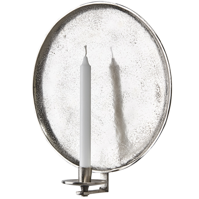 Vacker ljusstake för vägg där du kan använda både blockljus och vanliga kronljus (22mm). Plattan nedertill har en tagg som håller blockljus på plats - men taggen är gängad och kan bytas ut mot en ljuskopp för kronljus