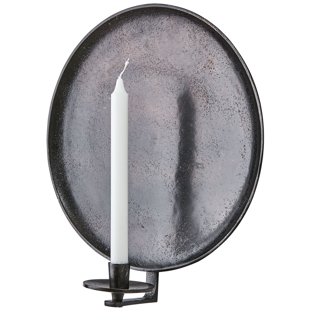 Antikbehandlad väggljusstake för både kronljus och blockljus. Ljushållaren för kronljus skruvas lätt av och ersätts istället av medföljande "pigg" för blockljus som skruvas fast i samma gängor.