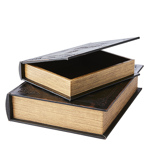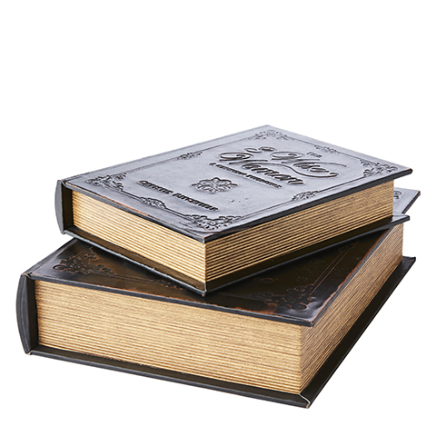 "Brooke" Dekorativa förvaringsboxar som ser ut som gamla böcker. Den linneklädda ytan har ett gammaldags tryck med Nellie the Elephant. Brooke levereras som 2 böcker i ett set och den mindre boken får plats i den större