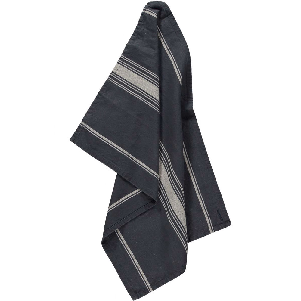 Gripsholms fina randiga kökshandduk har en underbart mjuk känsla och kommer i två färger lin/blå-grå eller grå-blå/lin. Detta är en garnfärgad produkt 60% lin och 40% bomull.
