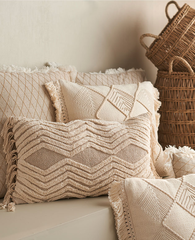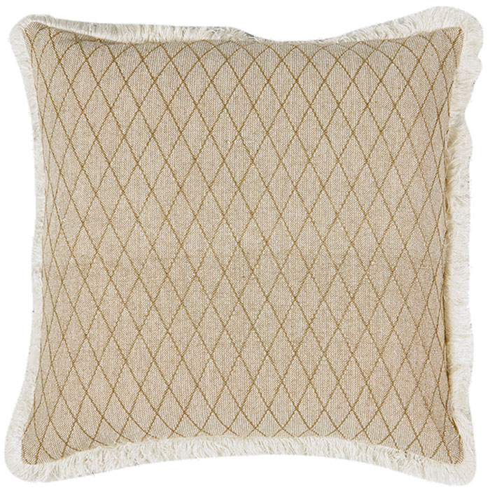 Beige-oliv kudde Med vita fransar - Innerkudde med fjädrar ingår