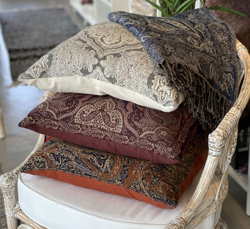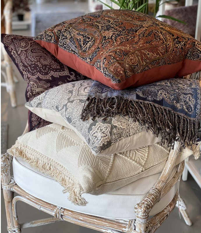 Roströd Kudde Med Vackert Mönser - Innerkudde med fjädrar ingår