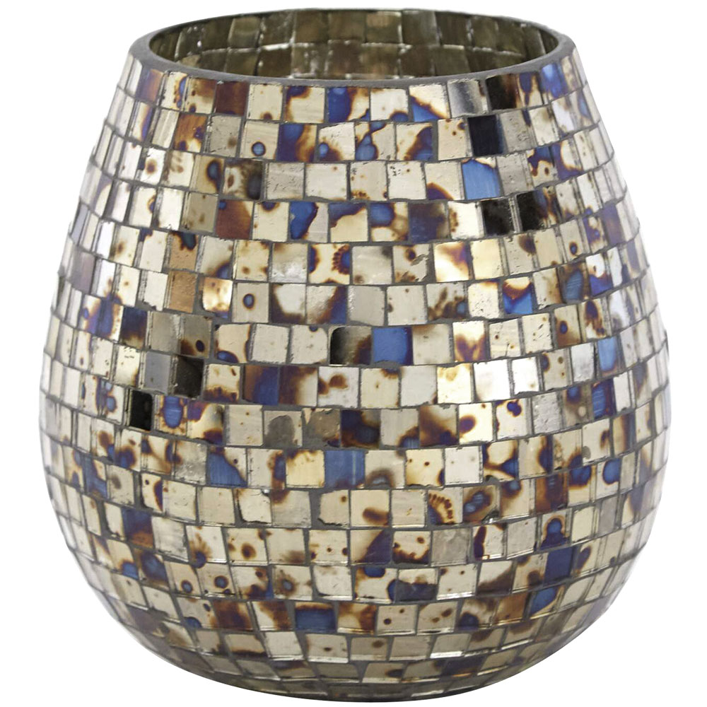 Ljuslykta i glas med glansigt mosaikmönster - 15 cm hög