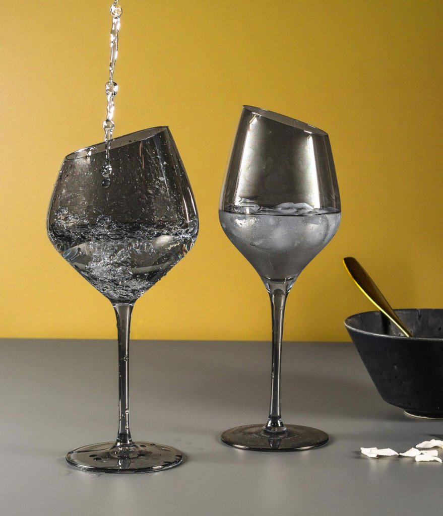 Superfestliga rökfärgade rödvinsglas med silvrig spegeleffekt!