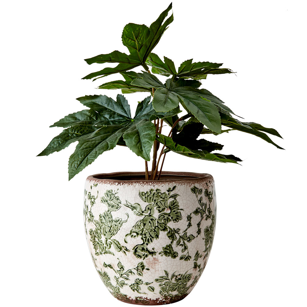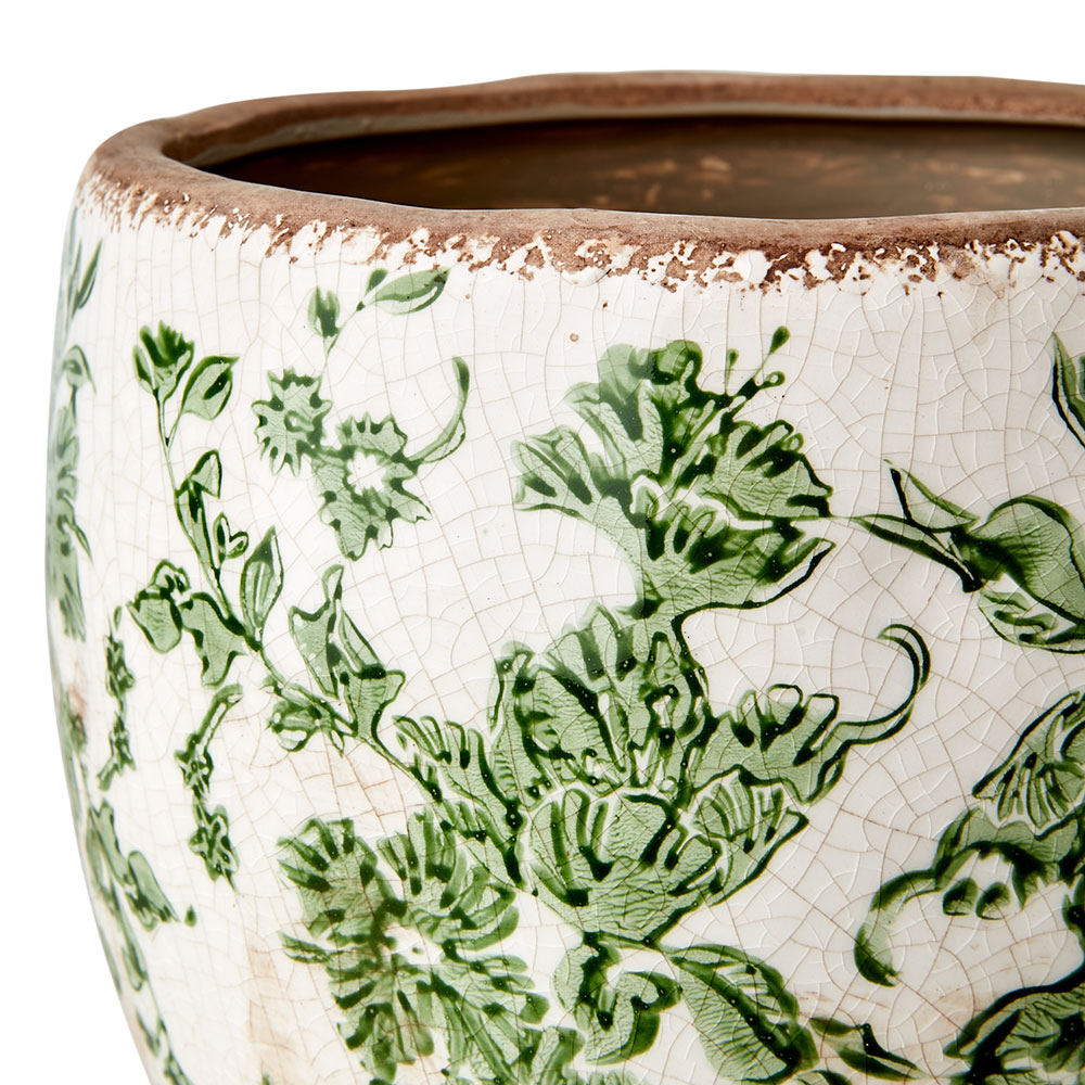 "Victoria" vacker serie med krukor, vaser och urnor från Affari. Vacker kanna, tillbringare som dekoration eller vas med antikbehandlad finish. Jättefint grönt mönster på benvit botten.