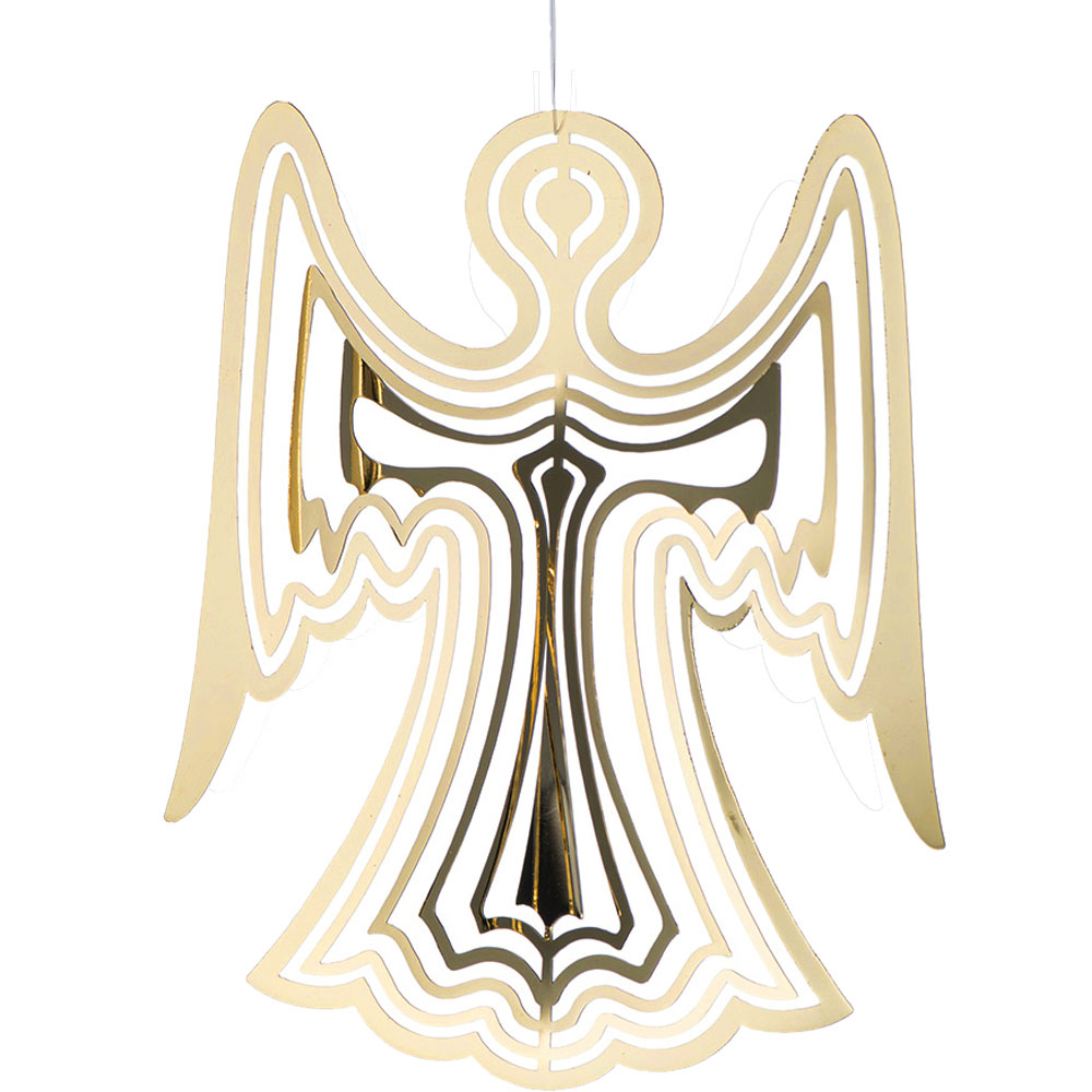 Vacker ängel, dekoration i guld-färgad metall. Tråd för upphängning i gran medföljer.