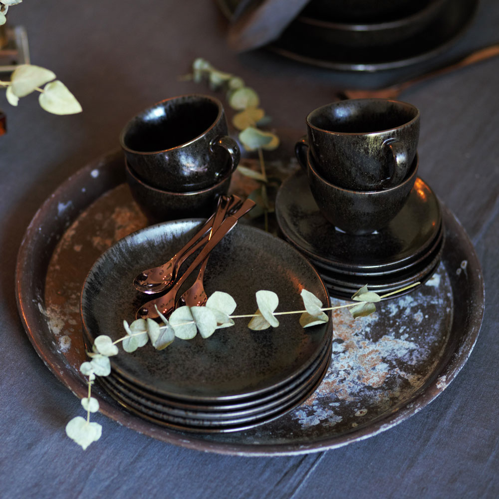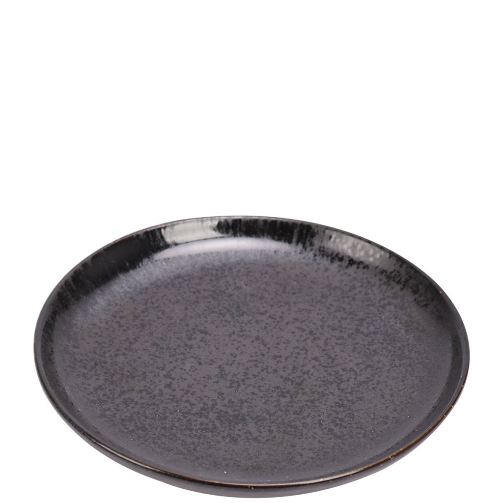 Svart assiett med vackert reaktiv glasering och rustik finish. Ingen produkt blir exakt likadan med denna typ av glasyr. Ø21 cm.