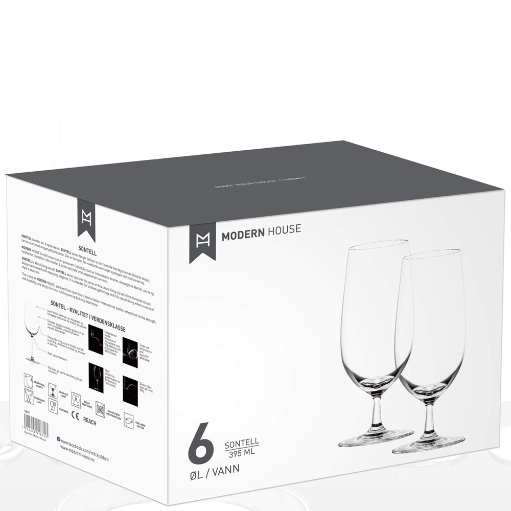 6st Ölglas, dryckesglas i blyfri kristall på fot - Mindre storlek 395ml och höjd 18cm