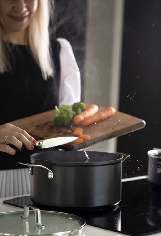 Black Line fungerar på alla typer av hällar och värmekällor och tål maskindisk. De är dessutom ugnssäkra upp till 250°C (220°C Med lock).