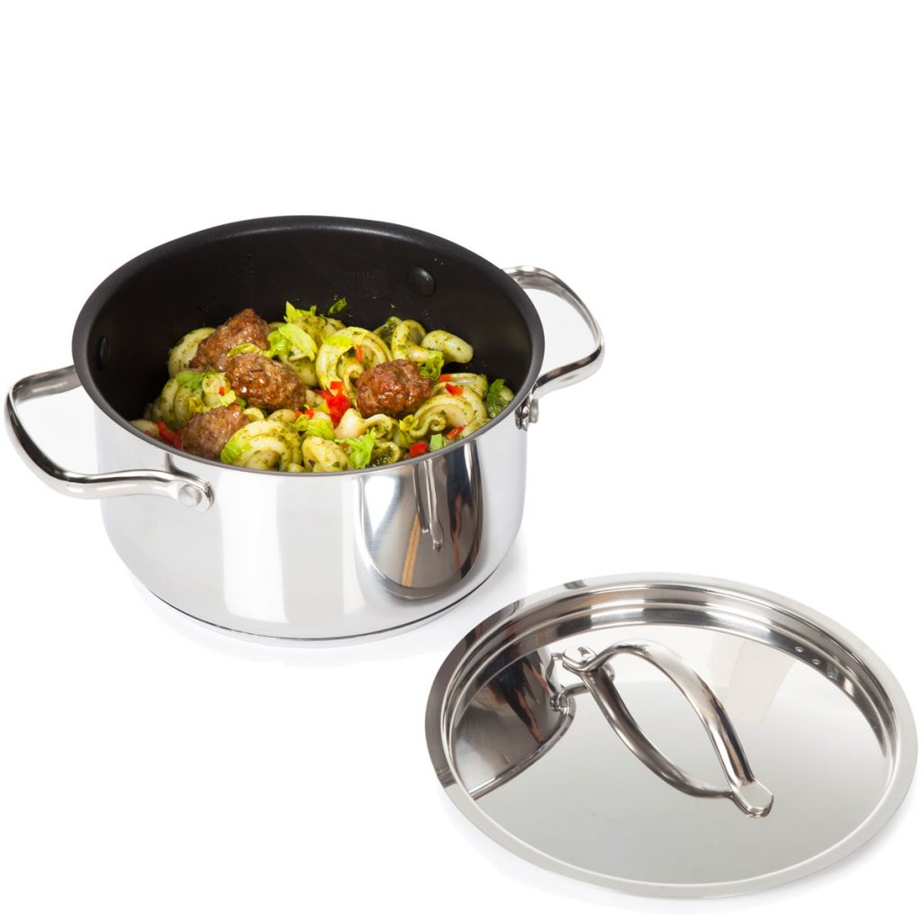 Botten har en aluminiumkärna på 4mm som är belagd med stål på båda sidor. Aluminiumkärna gör att värmen leds optimalt och ger snabb uppkokning vilket sparar energi. Setet kan användas på alla typer av hällar och i ugn upp till 260°C.
