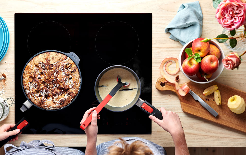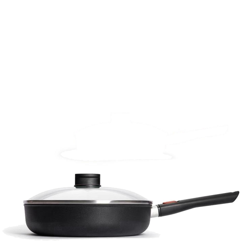 Pannan har en diameter på 28 cm, en höjd på 7 cm och rymmer ca 3,5L. Du kan med en knapptryckning ta av handtaget och använda själva traktörpannan/stekpannan i ugnen. Kommer med ett glaslock