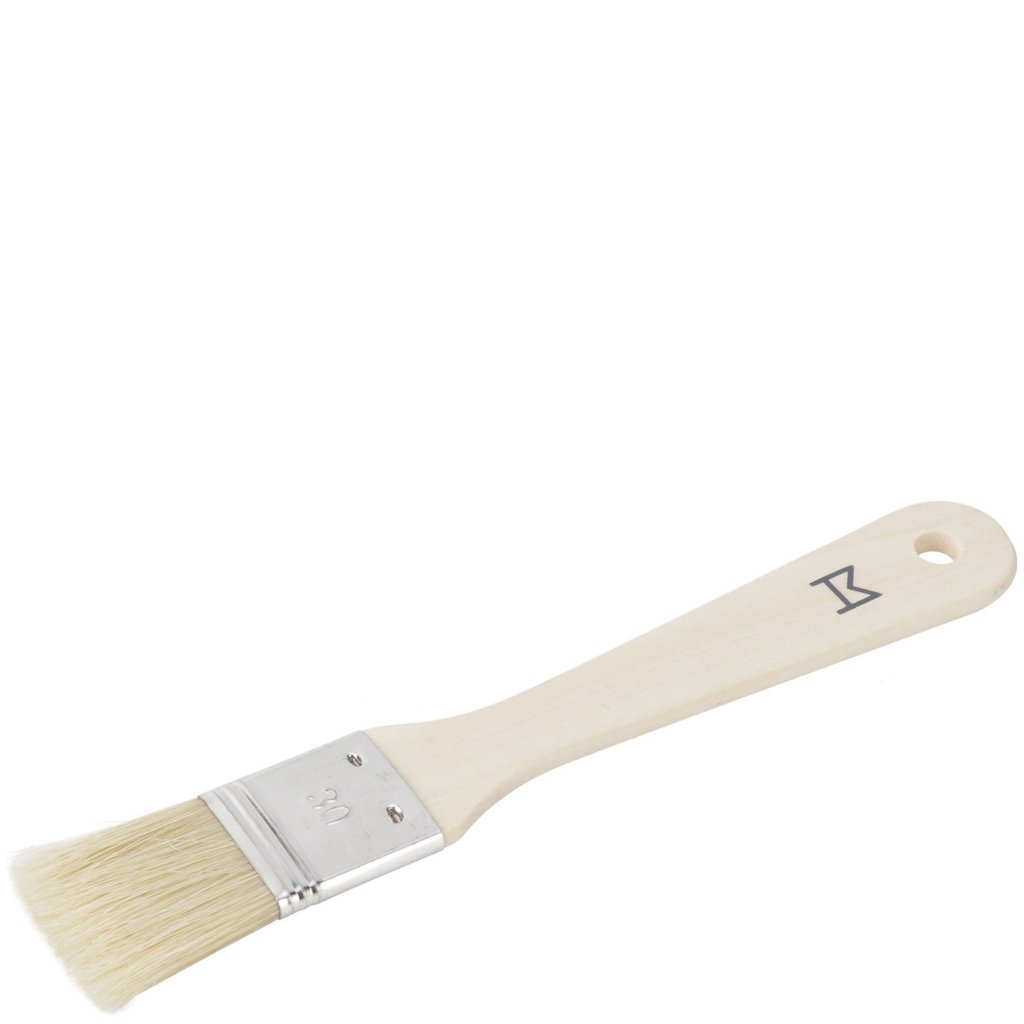 Bakpensel för att pensla vätska på bakverk eller till att pensla marinad på grillköttet mm. Tillverkad i trä, plåt och grisborst.