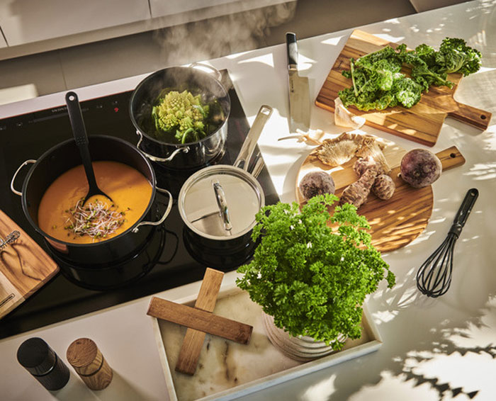 Tillverkad i nylon som tål 260°C. Fördelen med nylon är att den väger lite, tål mycket och kan användas i halkbelagda produkter utan att skada ytan (ex teflon).
