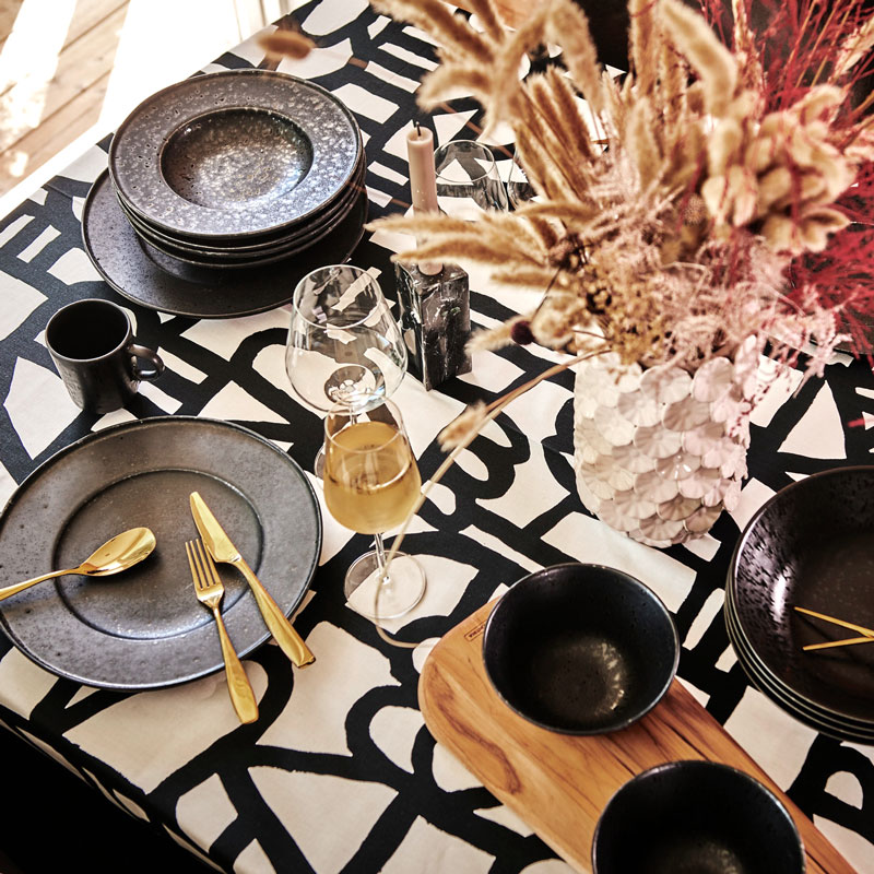 "Black Satin" är en serie med flera vackra produkter för dukning och servering.