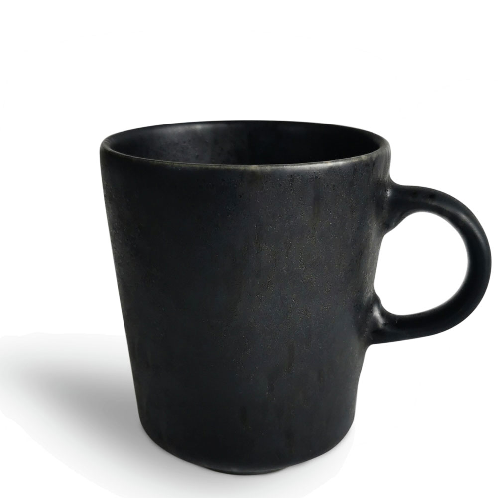 Liten mugg i stengods. Design från Modern House och tillverkad i Portugal, kända för sin kvalitét i tillverkningsprocess. Vacker rustik finish med en lite ojämn kant för ett lite ruffigare uttryck samt med mattsvart botten och glansiga fläckar. Mycket vacker....