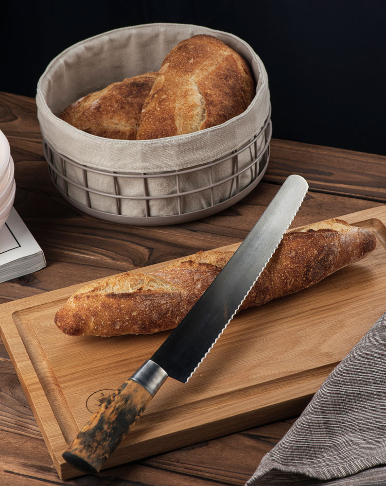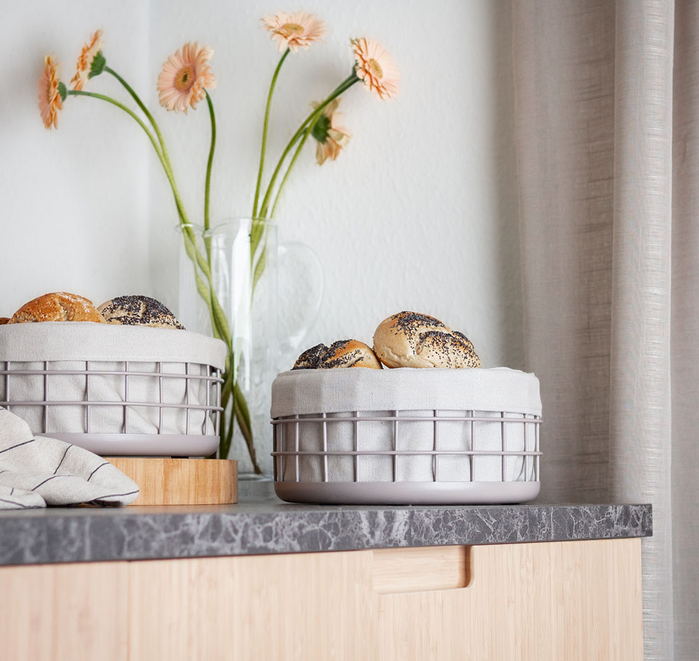 Servera nybakade småbröd och frallor i en brödkorg i snygg design