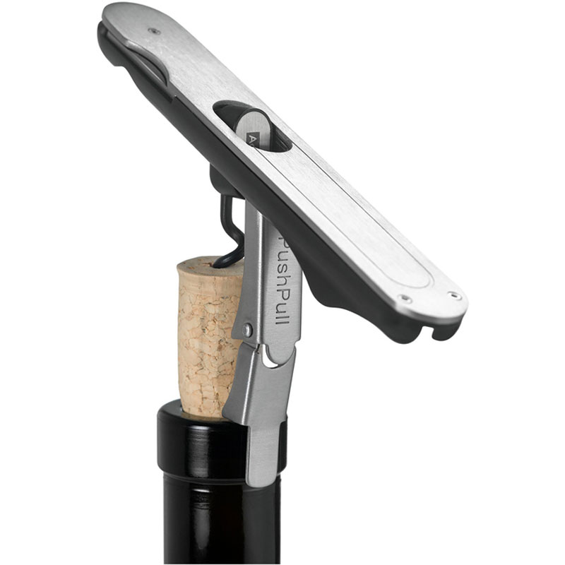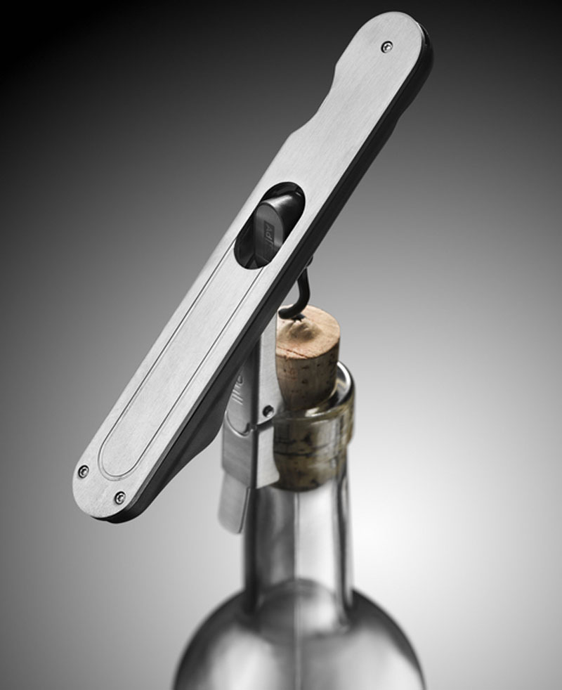 korkskruv, "kypareöppnare" i rostfritt stål från AdHoc. Ergonomisk design - öppnar vinflaskan enkelt med minimal ansträngning. Fungerar på både plastkork och naturkork. Integrerad folieskärare