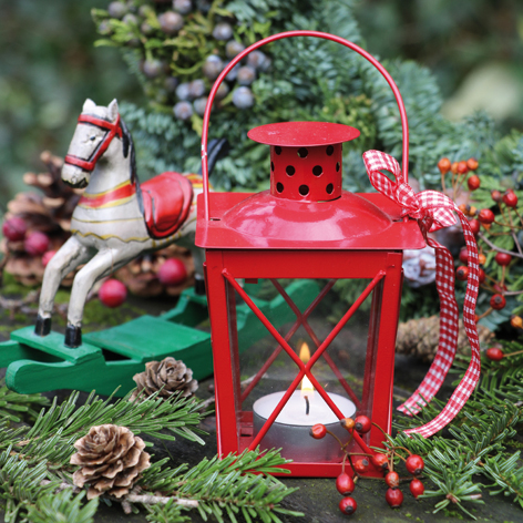 Pappersservett med fint motiv med röd ljuslykta och julkvistar