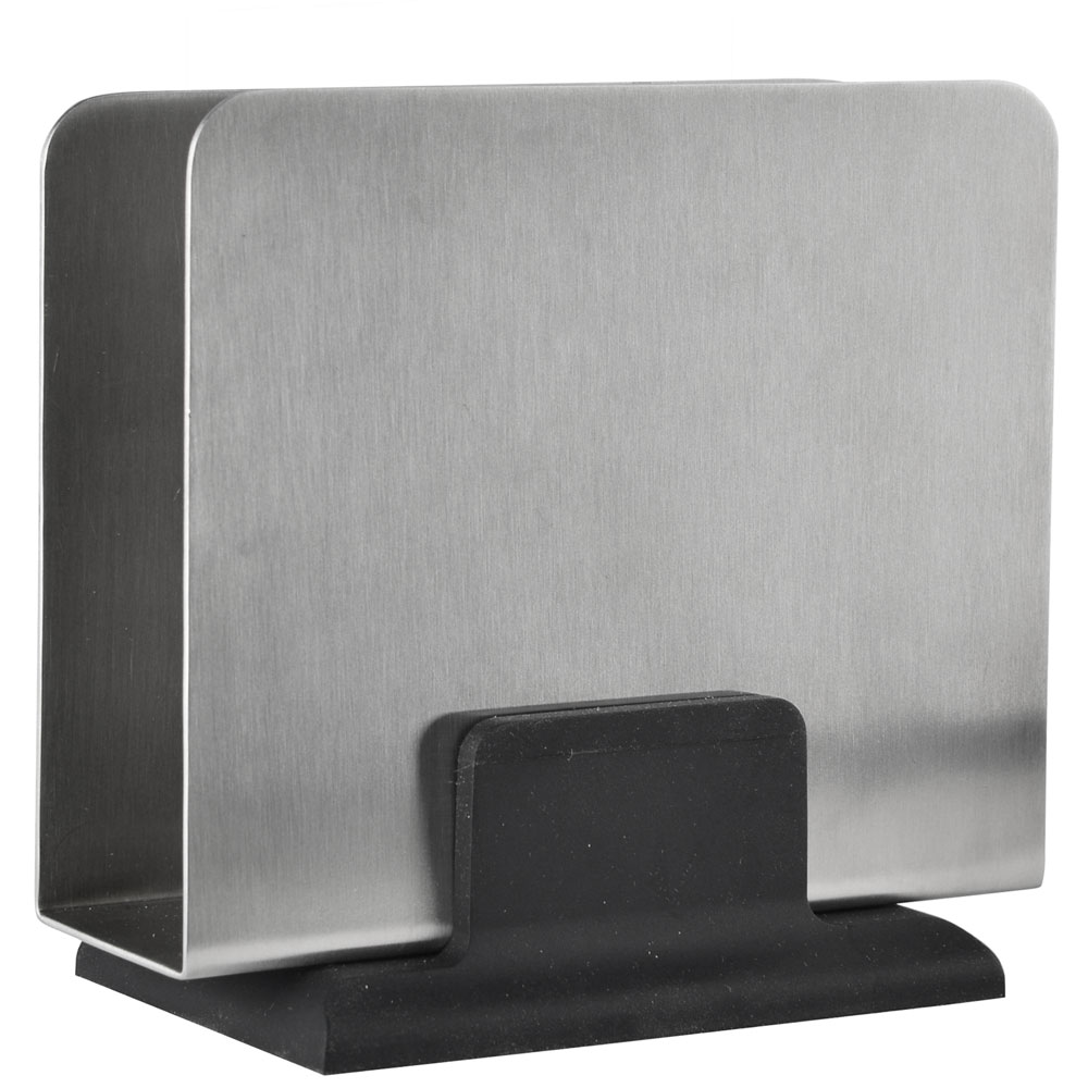 Praktisk och snygg servetthållare i borstat stål med svart silikonfot för skonsam användning på alla ytor.