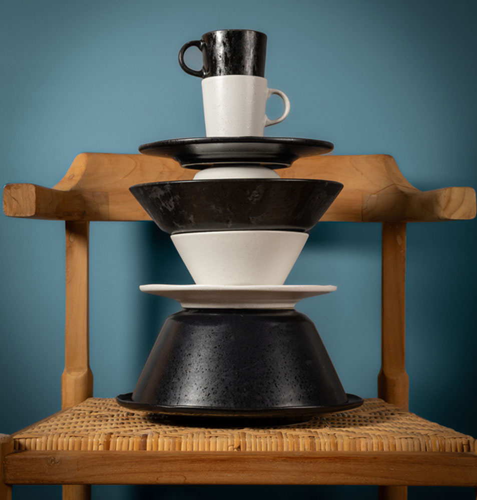Design från Modern House och tillverkad i Portugal, kända för sin kvalitét i tillverkningsprocess. Vacker rustik finish med mattvit botten och glansiga fläckar.