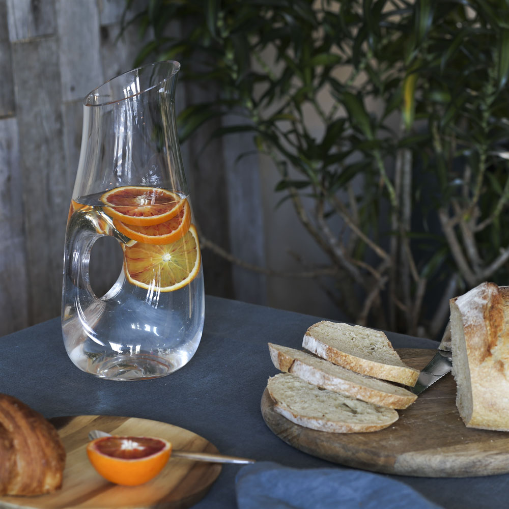 En rolig karaff / kanna som kan användas till alla typer av kalla drycker. Som vatten, vin, juice, iste, etc. Tillverkad i glas.