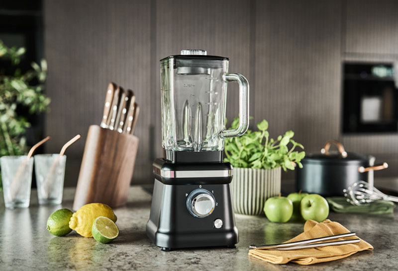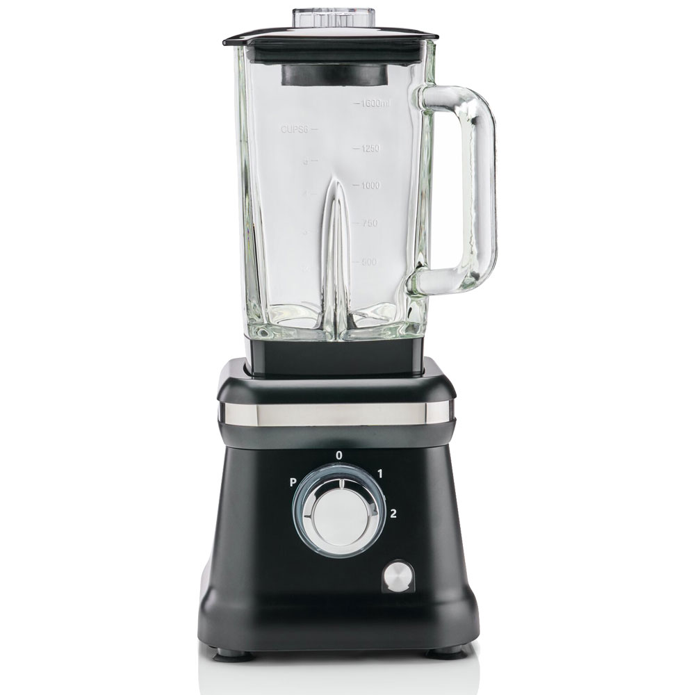 Den här blendern kommer med en rejäl och kraftig glaskanna på 1,6L och de 6 roterande skarpa knivarna gör mixningen effektiv både för hårda ingredienser såväl som mjukare.