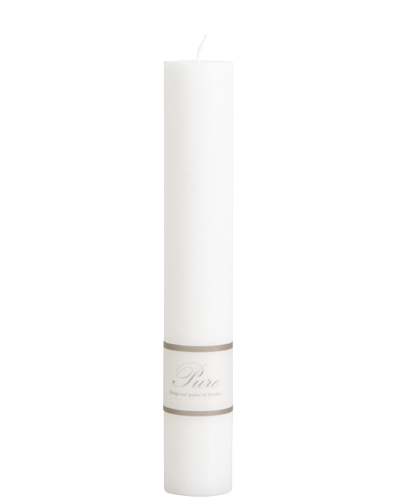 Vita blockljus "Pure" i äkta stearin. Inred vackert och stilfullt med vackert vita stearinljus i högsta kvalitet. 4cm breda och 10 cm höga.