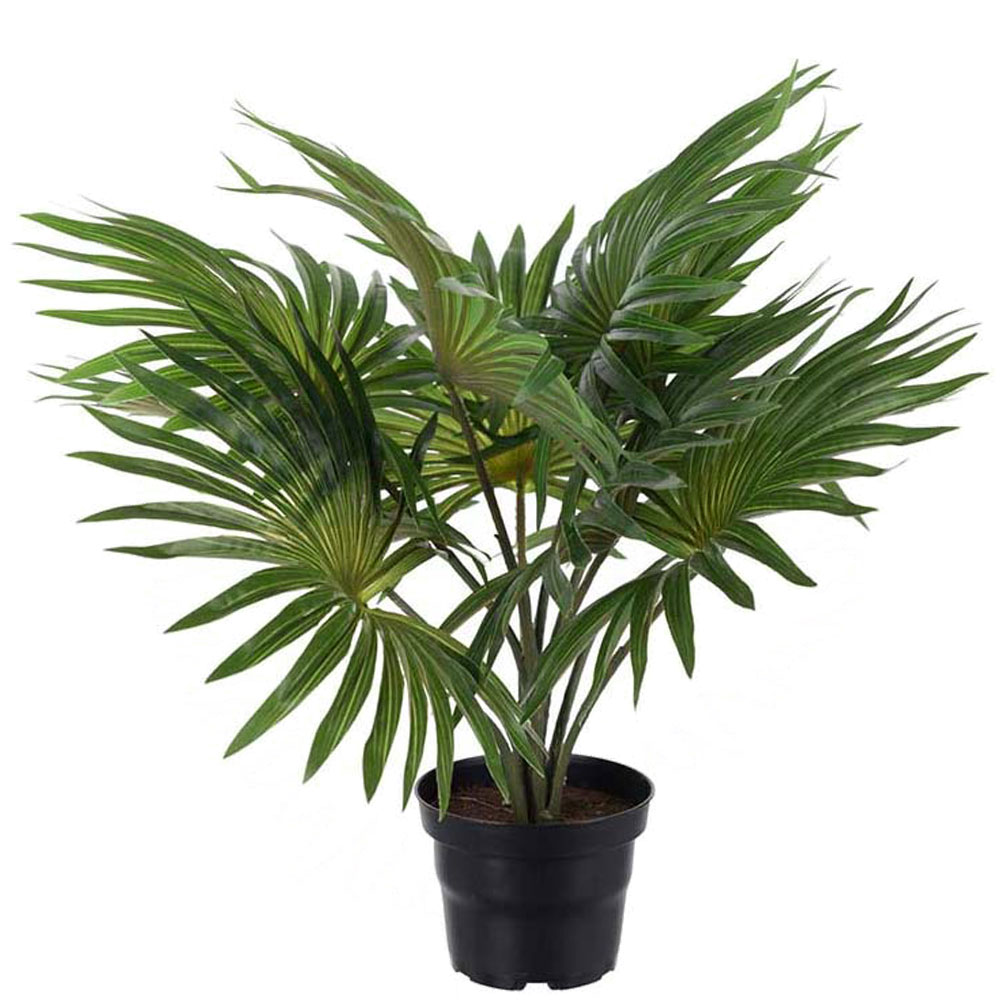 Konstväxt - Vacker stämningsfull grön mindre palm, ingjuten i plastkruka