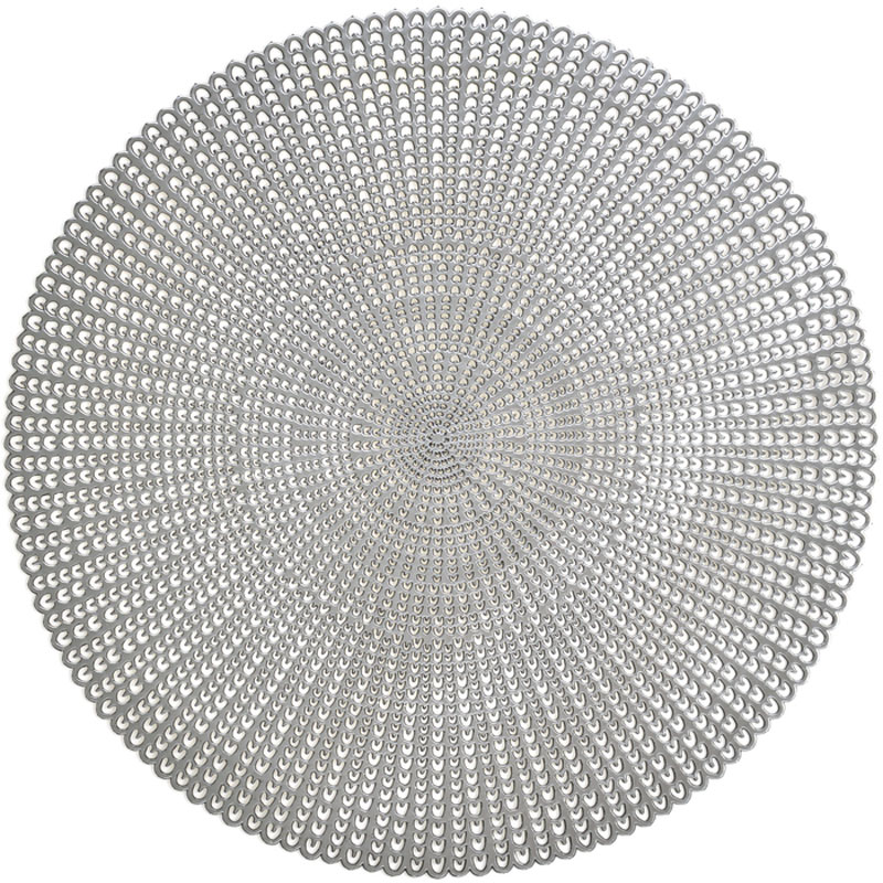 "Garcia" Rund bordstablett i glansig silver-färgad PVC /svart undersida.