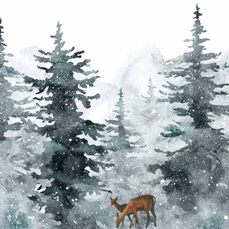 Pappersservett med fint julmotiv med rådjur i vintrig skog
