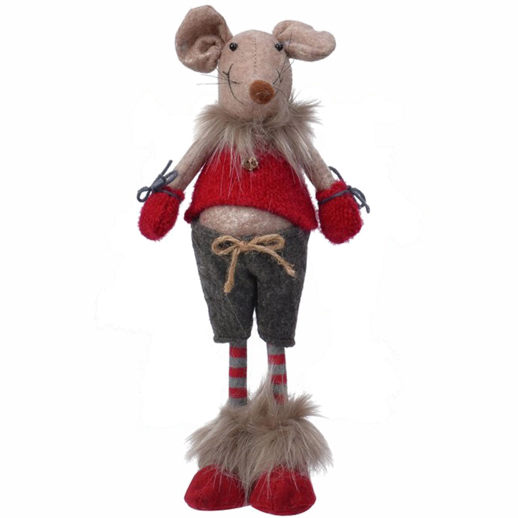Supermysiga julmössen Hedvig - Här i varianten eom är kille och har fina filt-shorts och röd stickad jul-tröja. Hedvig är ca 33cm hög om man inte mäter med öronen. Tillverkad i polyester med metallstänger inuti som gör att Hedvigs ben står stadigt på bordet