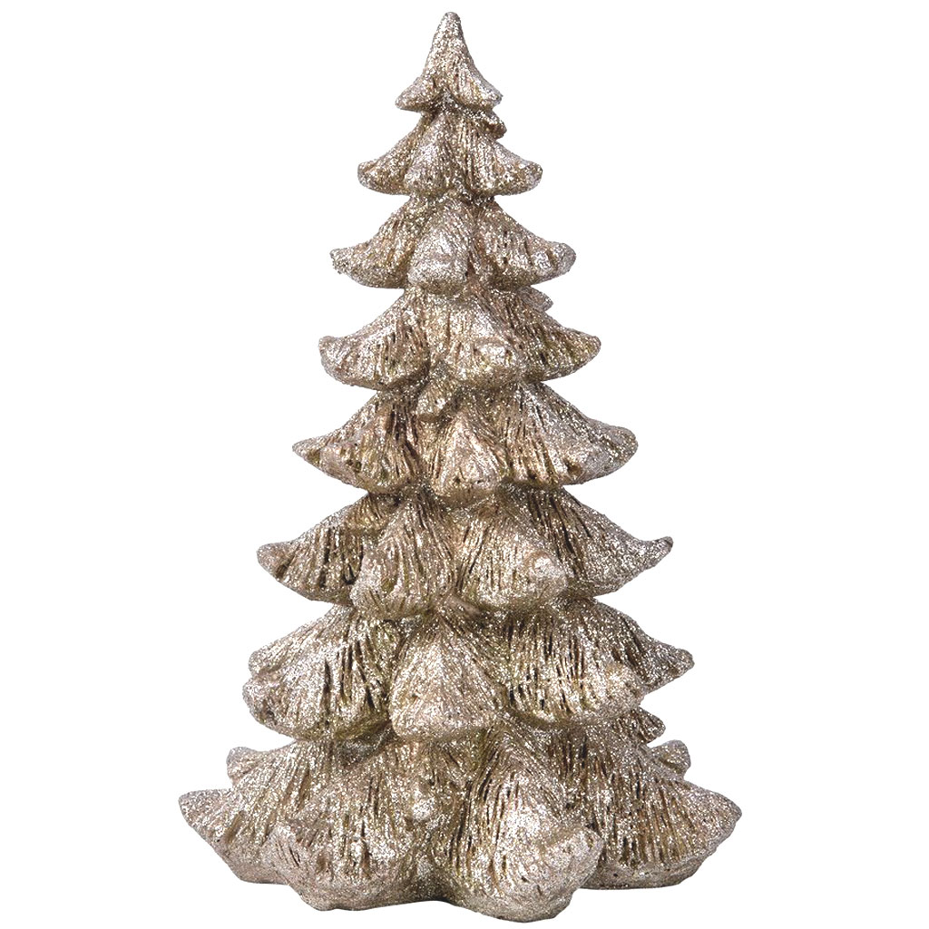 Vacker juldekoration - "Dorthe" Guldförgad julgran i polyresin och mycket levande former. Granen har mkt guldglitter och mycket glittereffekt