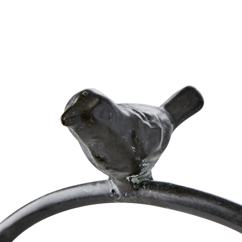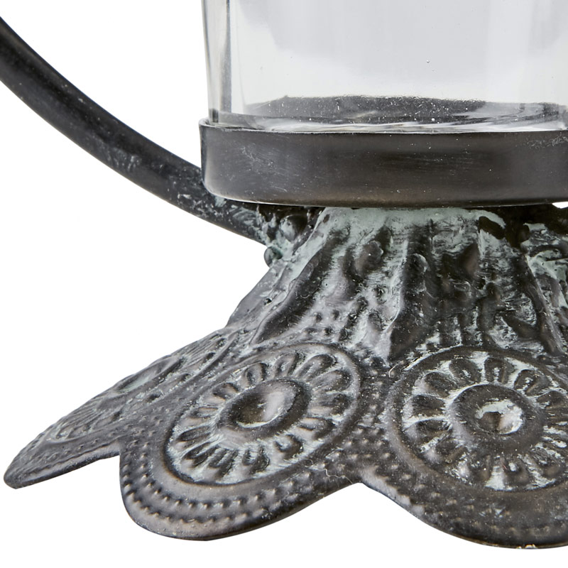 "Olivia" Vackra ljuslyktor, värmeljushållare i svart järn och glas. Dekorativ fågel pryder den runda bågen upptill.