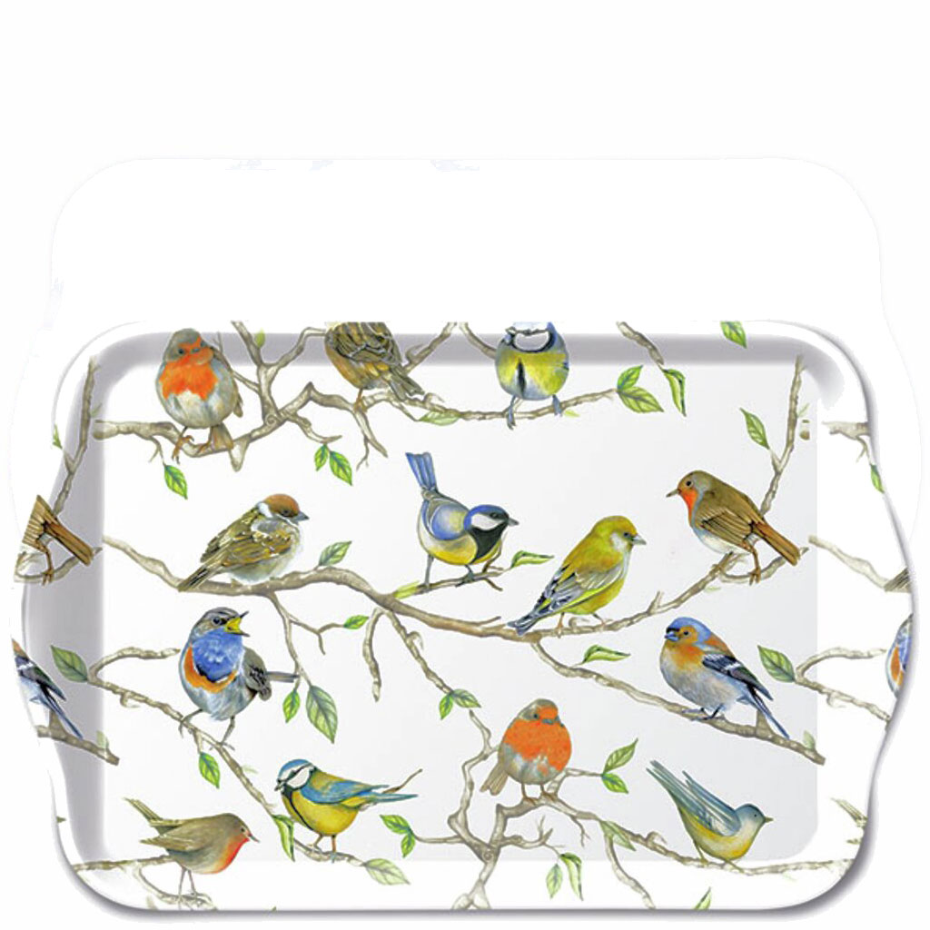 Liten konstnärligt vacker bricka i melamin - Motiv med mängder av olika fåglar och fågelarter. Tillverkas av Ambiente kända för sina otroligt vackra designmotiv.