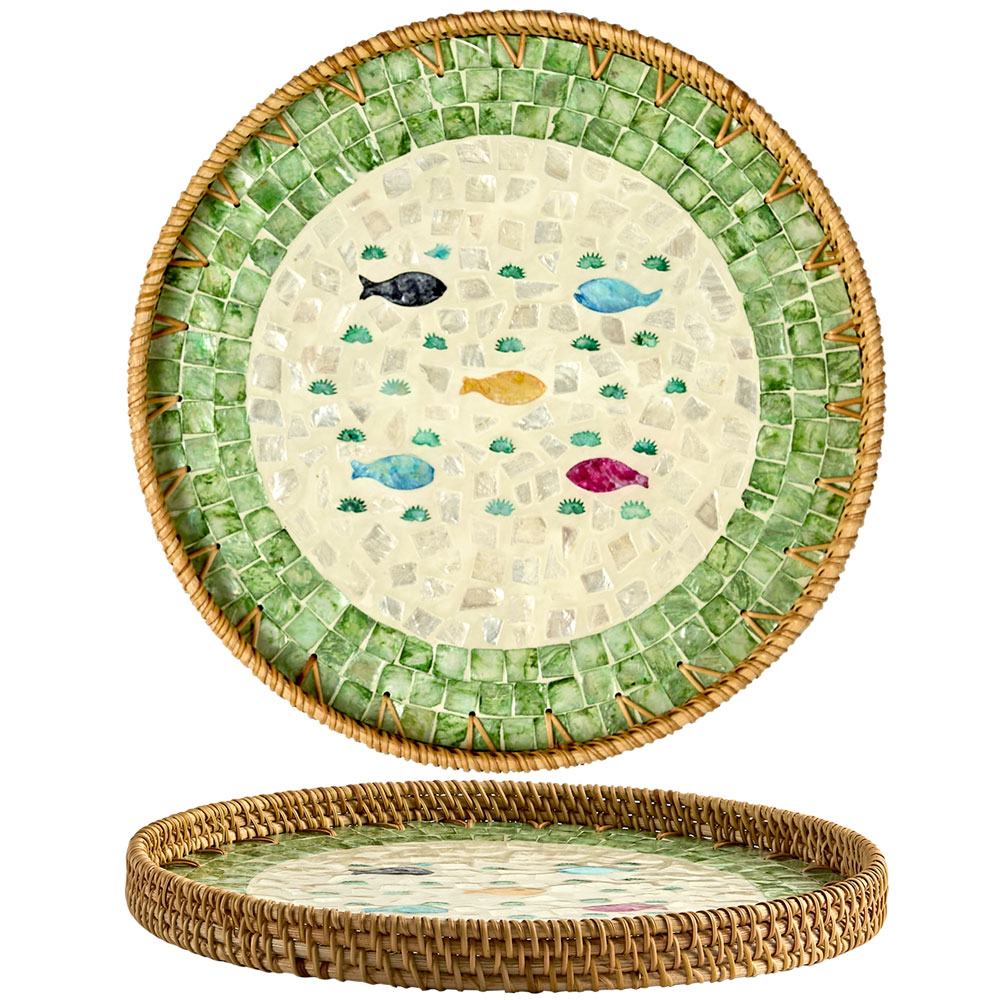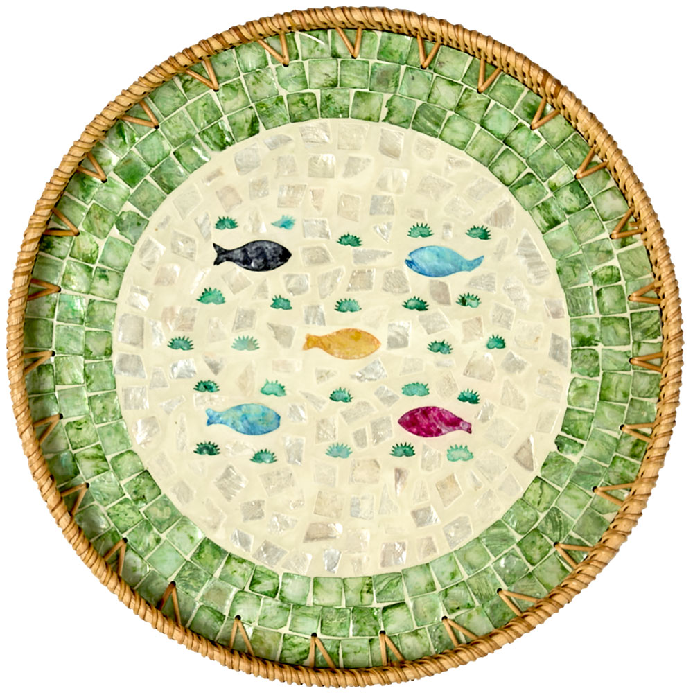 Sunny Bricka Rund - Grön/Natur Fisk - Ø34,5cm - Affari of Sweden