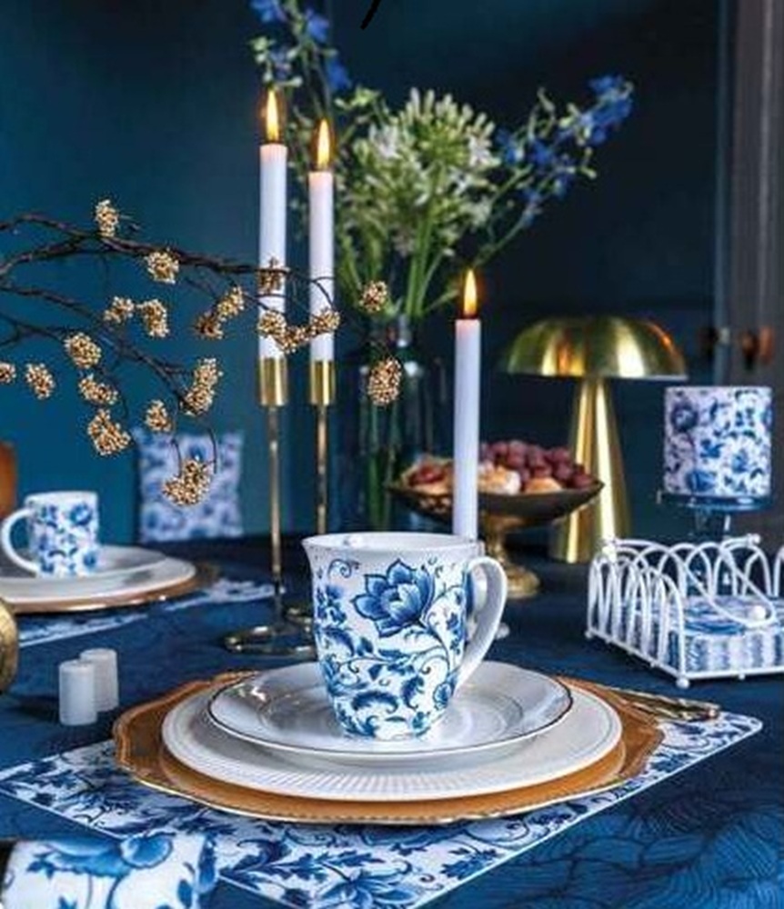 Konstnärligt vacker mugg i fint benporslin - Motiv med blå blommor. Tillverkas av Ambiente kända för sina otroligt vackra designmotiv