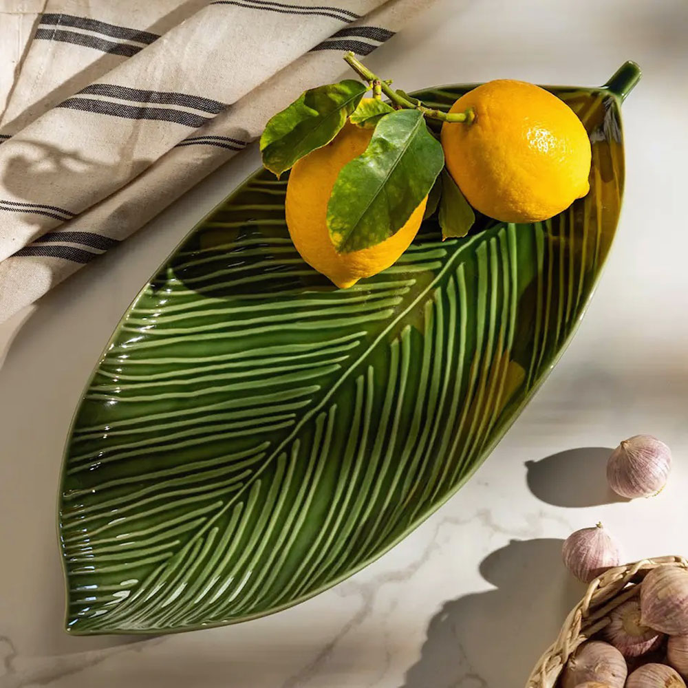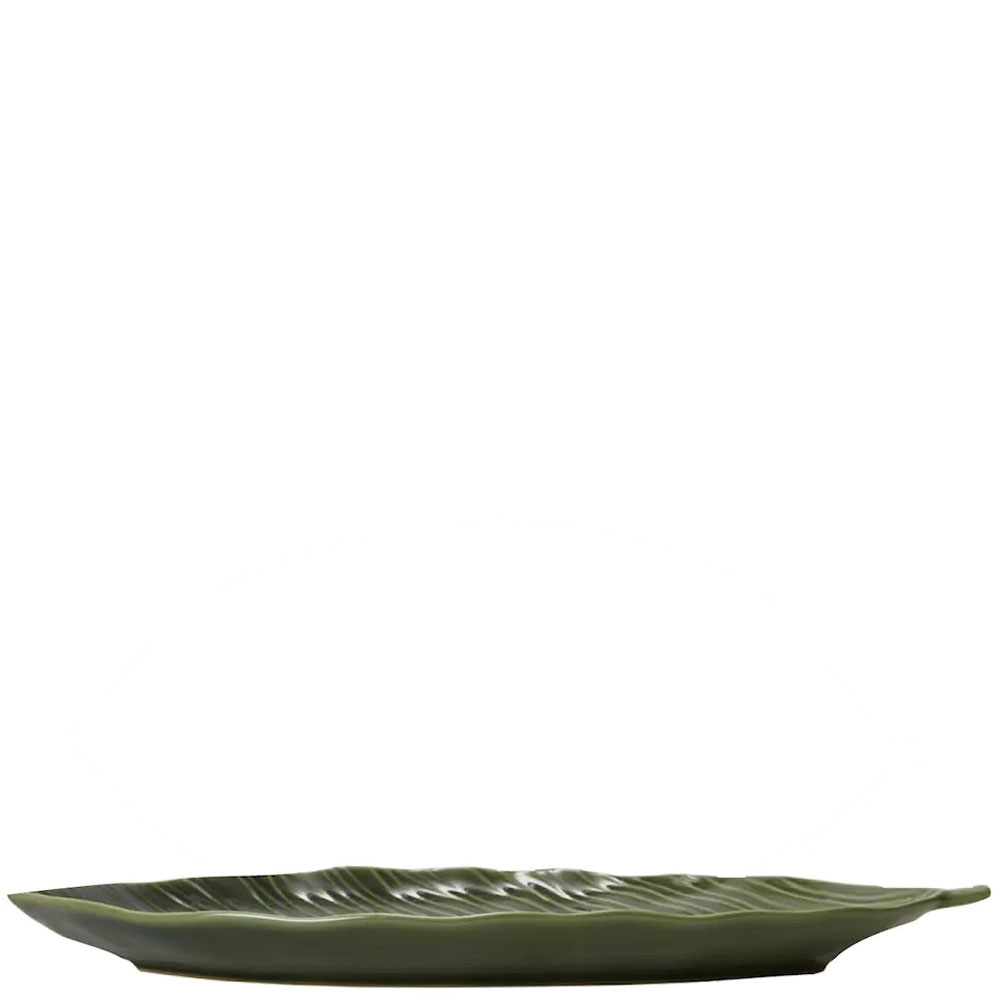 Vackert grön serveringsfat format som ett stört löv. Tillverkad i stengods och i en storlek som ger många möjligheter. Ha som en vacker dekoration på bordet, servera förrätten eller tilltugg - kanske efterrätten? Vackert fat för både vardag och fest.