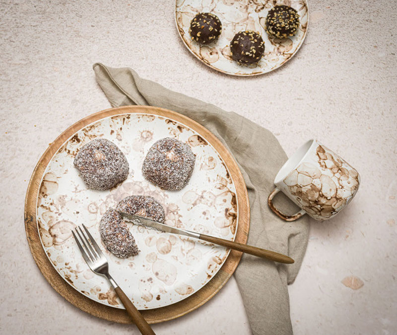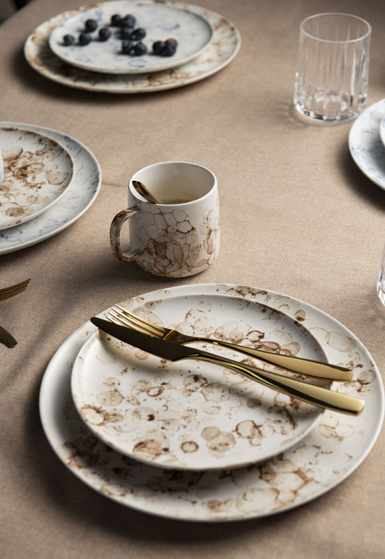 Tekniken som används för att få det vackra bubbelmönstret är att använda en formel som läggs till glasyren som gör att den bubblar. Glasyren läggs sedan på produkten, som kallas handdoppning och sprayas sedan med färgglad glasyr som därmed blir helt unik för varje enskild produkt och variationer förekommer därmed naturligt.Effect kan diskas i diskmaskin, tål frys och mikrovågsugn och vanlig ugn upp till 180°C