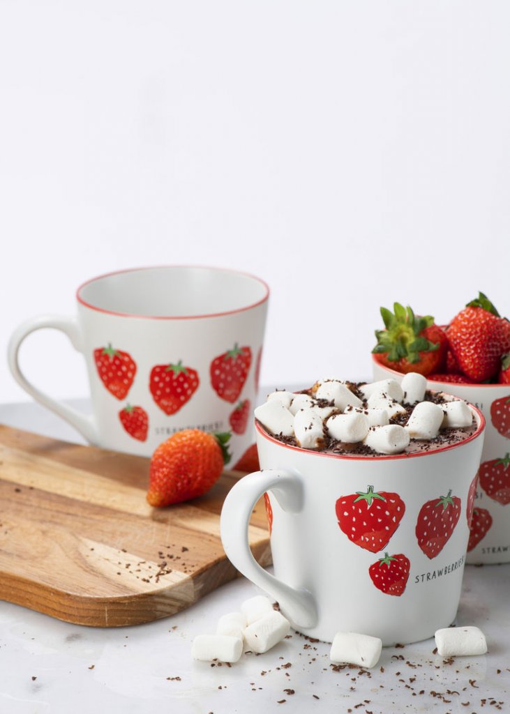 Vit Mugg med Röda Jordgubbar - Porslin 40cl - Modern House