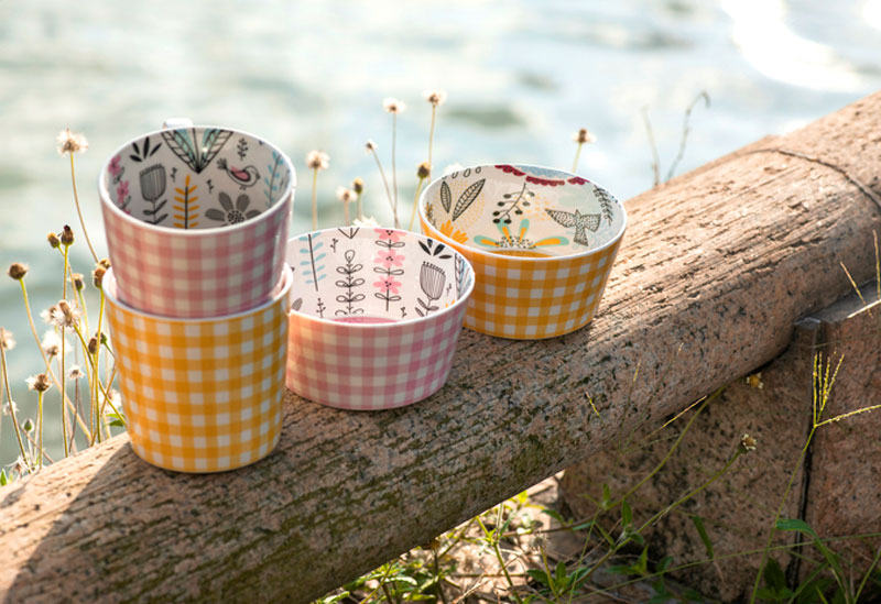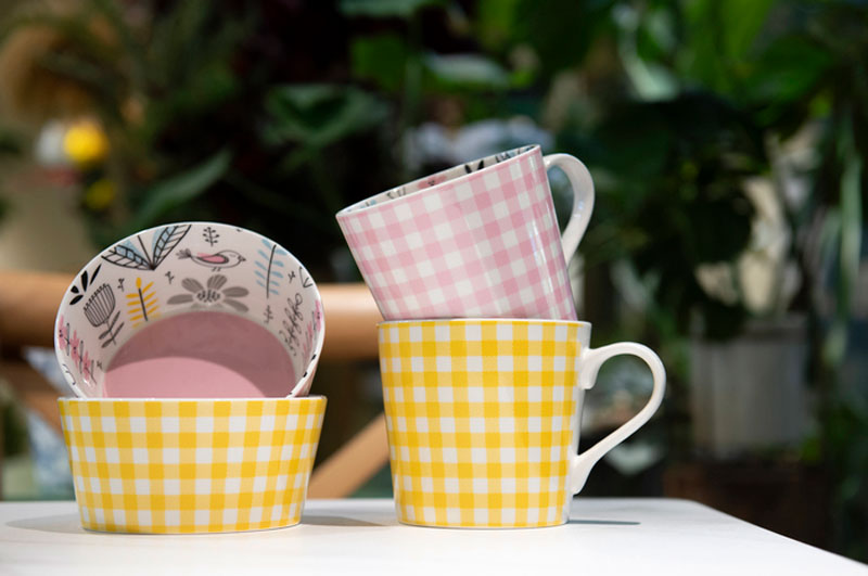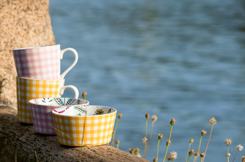 Njut av ett lugnt morgonkaffe på terrassen eller servera goda drycker i dessa fantastiskt vackra Kia-muggar!Insidan är lika charmig som utsidan. Härligt rutigt mönster på utsidan och olika färgstarka mönster på insidan. Botten längst ner helt i rosa. Tillverkad i porslin som säkerställer en hållbarhet som håller säsong efter säsong och som kan diskas i diskmaskin