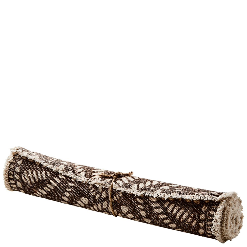"Fernando" - Vackert mönstrad brun bordslöpare med urtvättad finish och småfransar längs kortsidorna