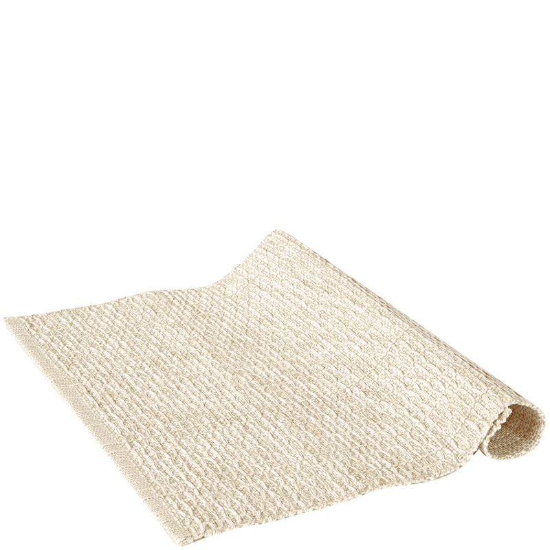 "Sara" bordslöpare i vit och beige melerad kulör och 100% bomull. Väven är vit, offwhite, men med trådar i beige som ger liv och kontrast åt mönstret. Lite mindre storlek 100cm lång