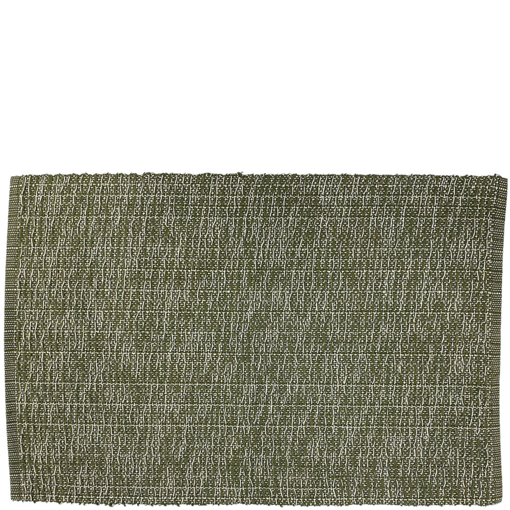 "Sara" bordstabletter i mörkgrön och vit melerad kulör och 100% bomull. Väven är mörkgrön, men med vita trådar som ger liv och kontrast åt mönstret.