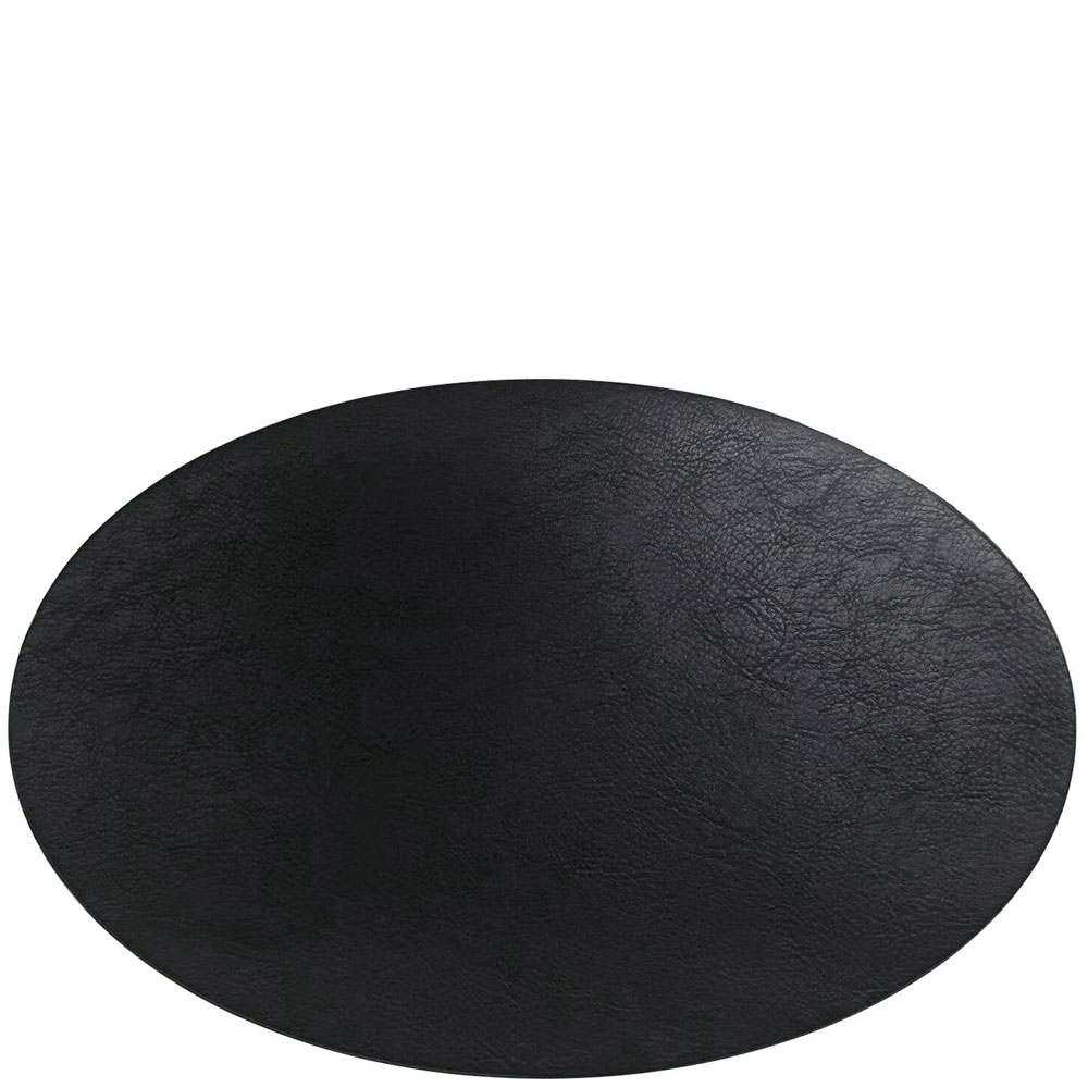 "West" Oval bordstablett i svart konstskinn. Fin finish med mjukt naturtroget skinnmönster på båda sidor.