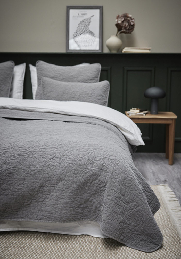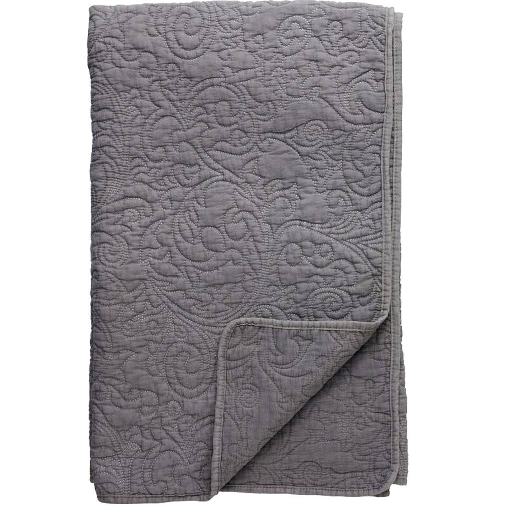 Grått Överkast Isabelle - Quiltat Mönster - 260x240 cm - Design Lene Bjerre