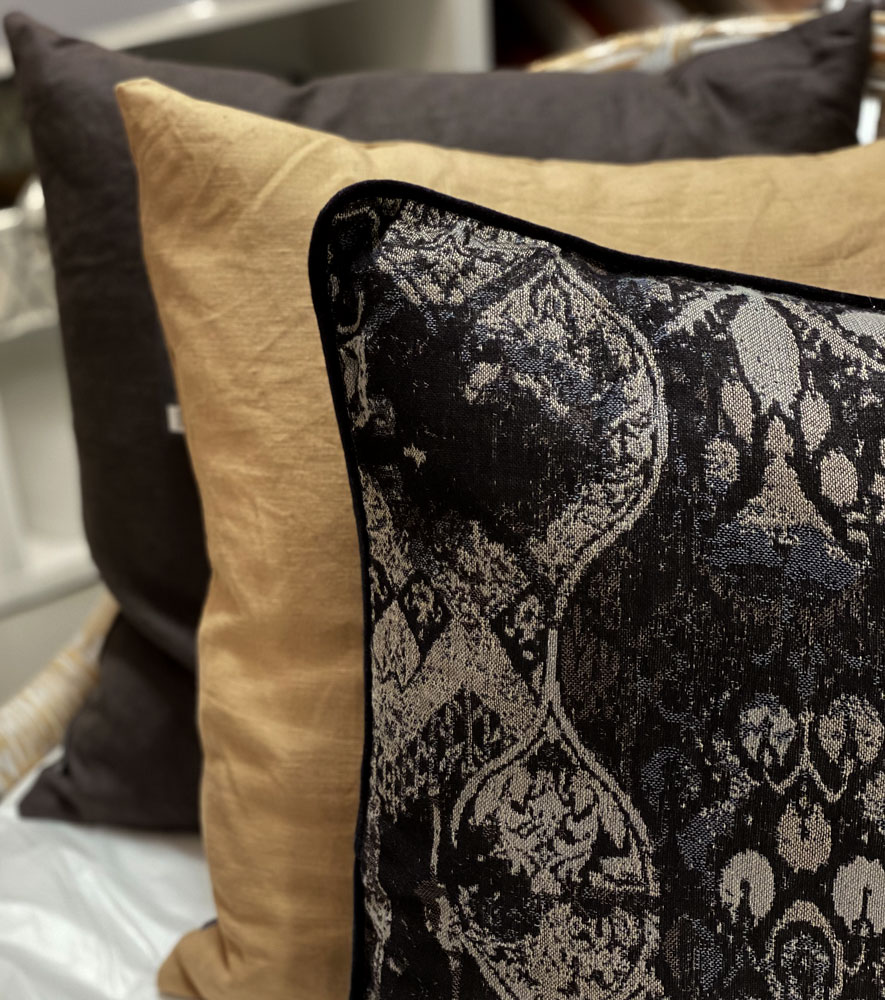 Linnekudde från Holmen i vacker beige kulör. Tyg i 100% linne och innerkudde med fjädrar ingår-