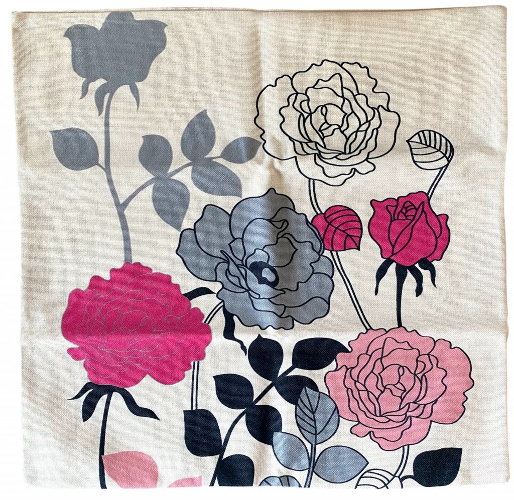 Stilfullt kuddfodral med blommotiv - Rosor och Rosblad - 45x45 cm